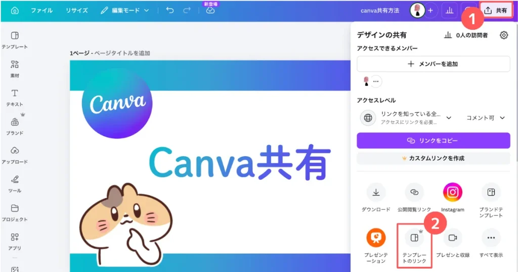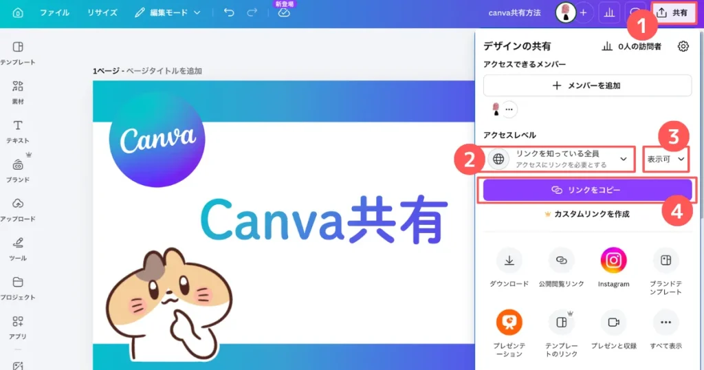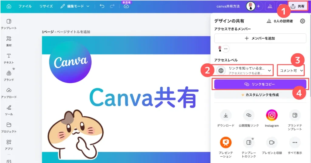 まず、Canvaでは制作したデザインを誰にでも簡単に共有することができます。