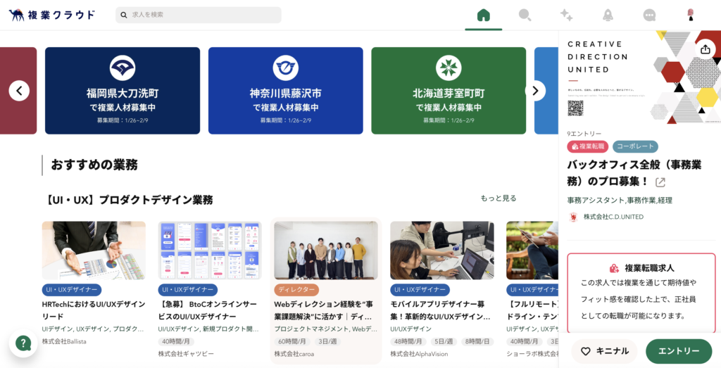 全体的に「質の高いお仕事」が多く、特にライティングやデザインなど、クリエイティブな分野に強いのが特徴です。
