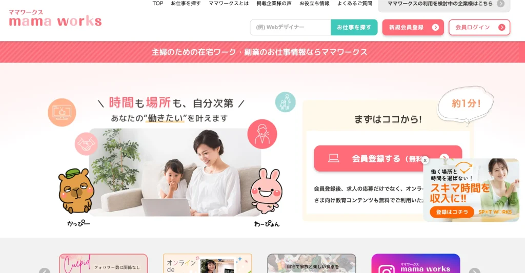 ママワークスは、子育て中の女性に特化した求人サービスです。