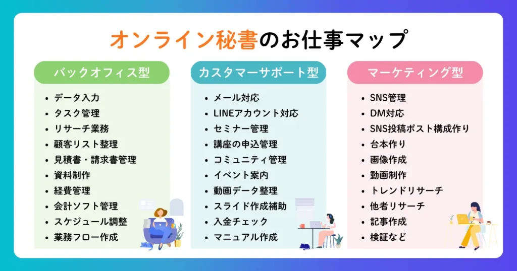 「事務サポート」「オンライン秘書」「バックオフィス」