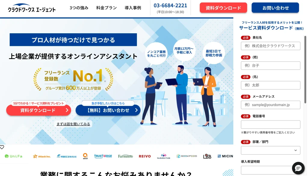 導入企業実績が豊富なオンラインアシスタントサービス。