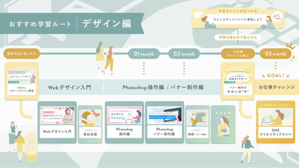 そこで本記事では、SHElikesを含む4つのスクールを経験し、SHEを卒業して現役デザイナーになった私が、以下の内容をぶっちゃけます。
