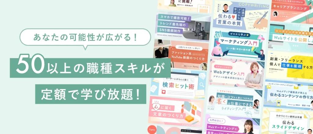 シーライクスでは、WebデザインからSNS運用、ライティングまで、今の時代に求められる最新のスキルが学び放題。