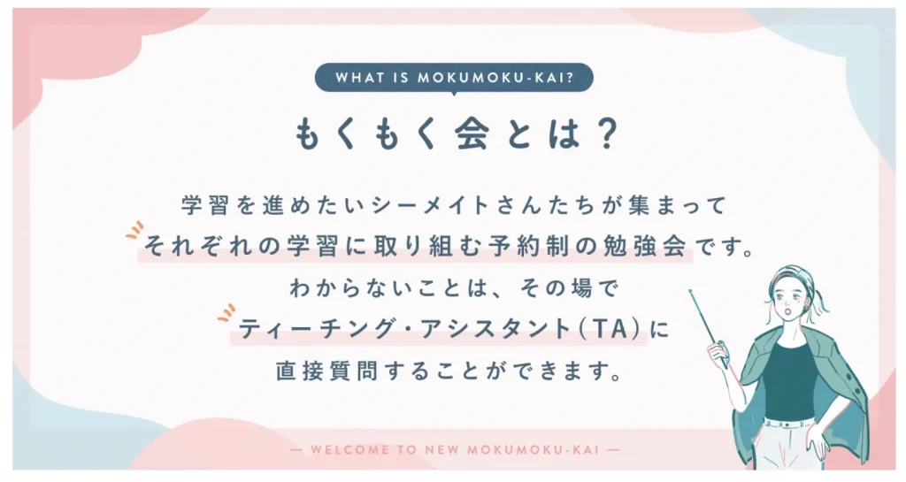 シーライクスには、受講生が集まって、わからないことが聞ける予約制の勉強会があります。
