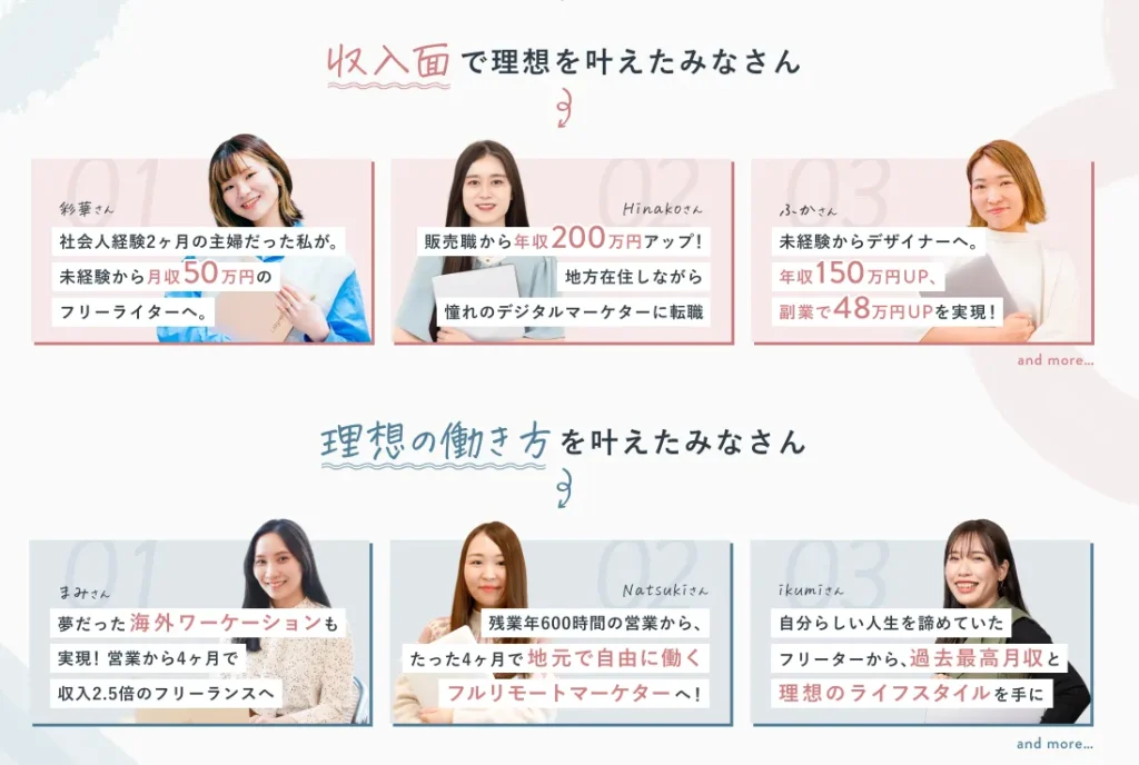 公式ホームページでも受講生たちの体験談がいくつか掲載されていて、シーライクスでの学びを「仕事」につなげている人がたくさんいます!