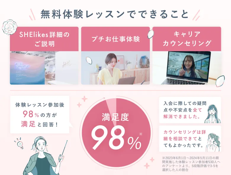 SHElikesの無料体験レッスンは、次のような方に特におすすめです。