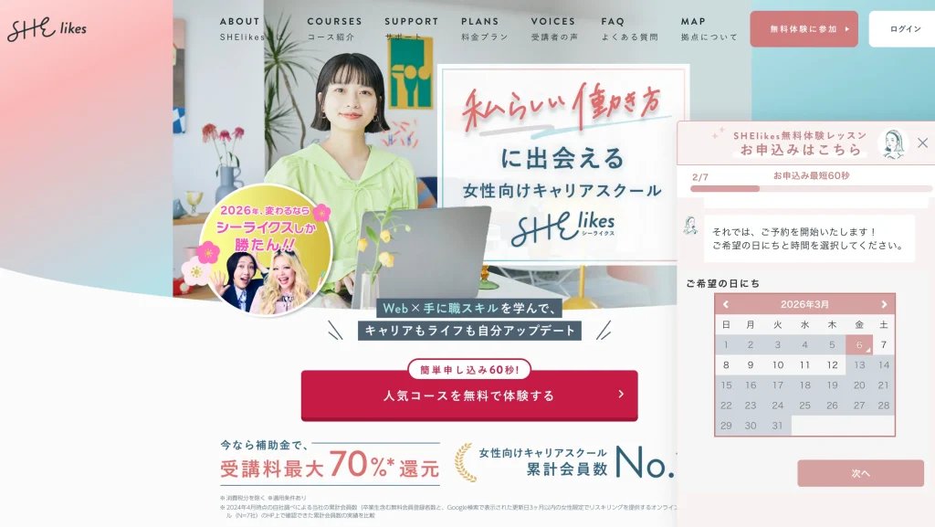 SHElikes(シーライクス)に興味があって、無料体験レッスンを検討してるけど、