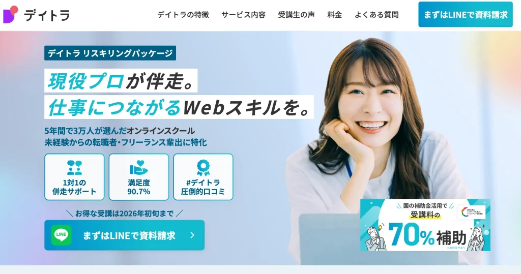 デイトラの最大の特徴は、多くのスクールが「後日キャッシュバック」なのに対し、最初から補助金分を差し引いた金額で受講を始められること!