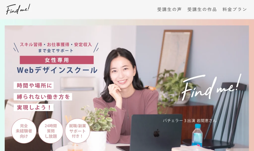 Find me!は一生涯使えるスキルを身につけ自分らしいキャリアや働き方を叶えるWEBデザインスクールです。