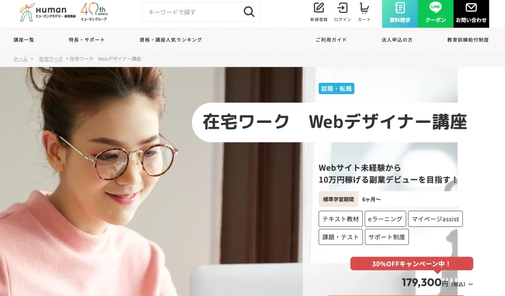 - Webデザインコース(補助金先取りで50%OFF)