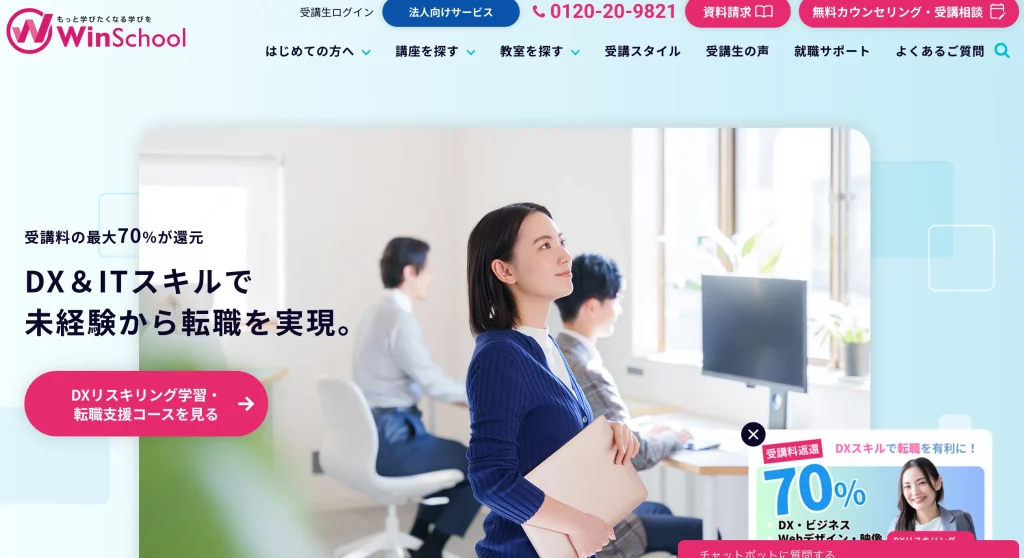 - 在宅ワークや副業に強い、今どきのスクールが対象